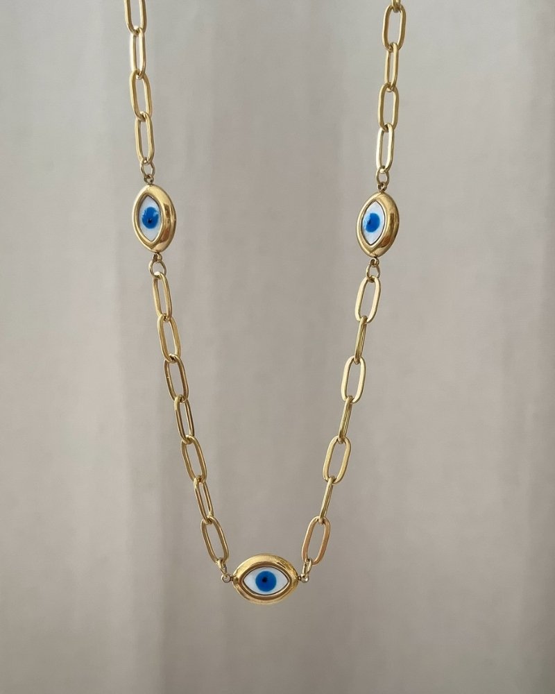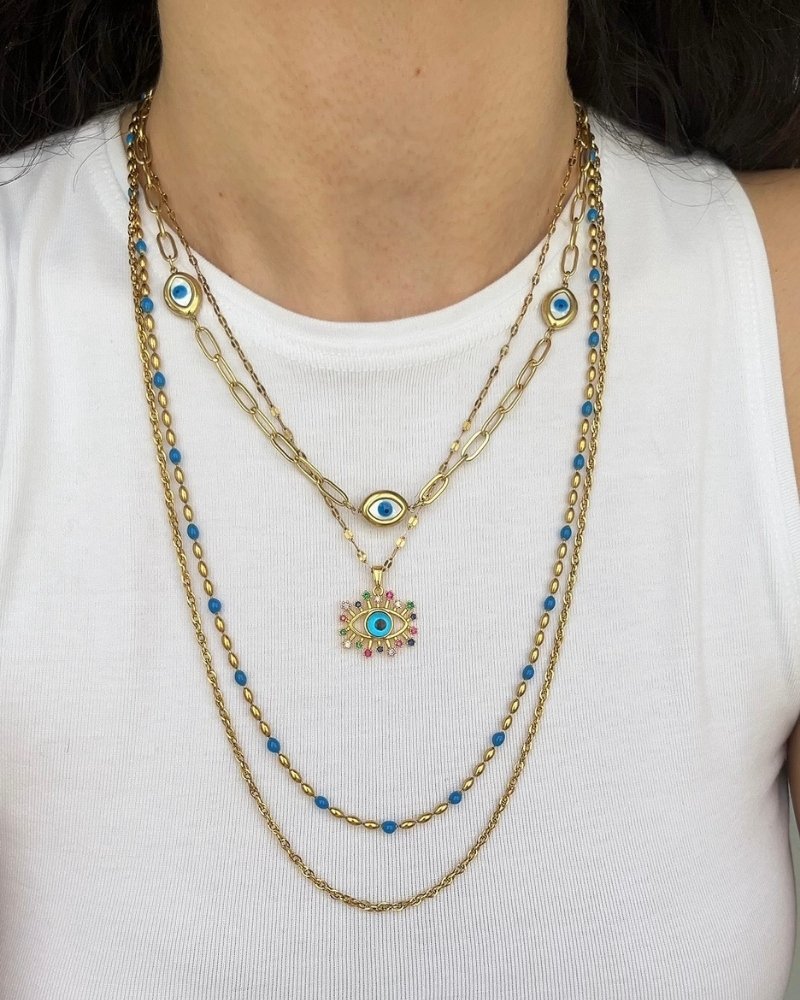 Altın Kaplama Nazar Boncuklu Kolye 42+6cm