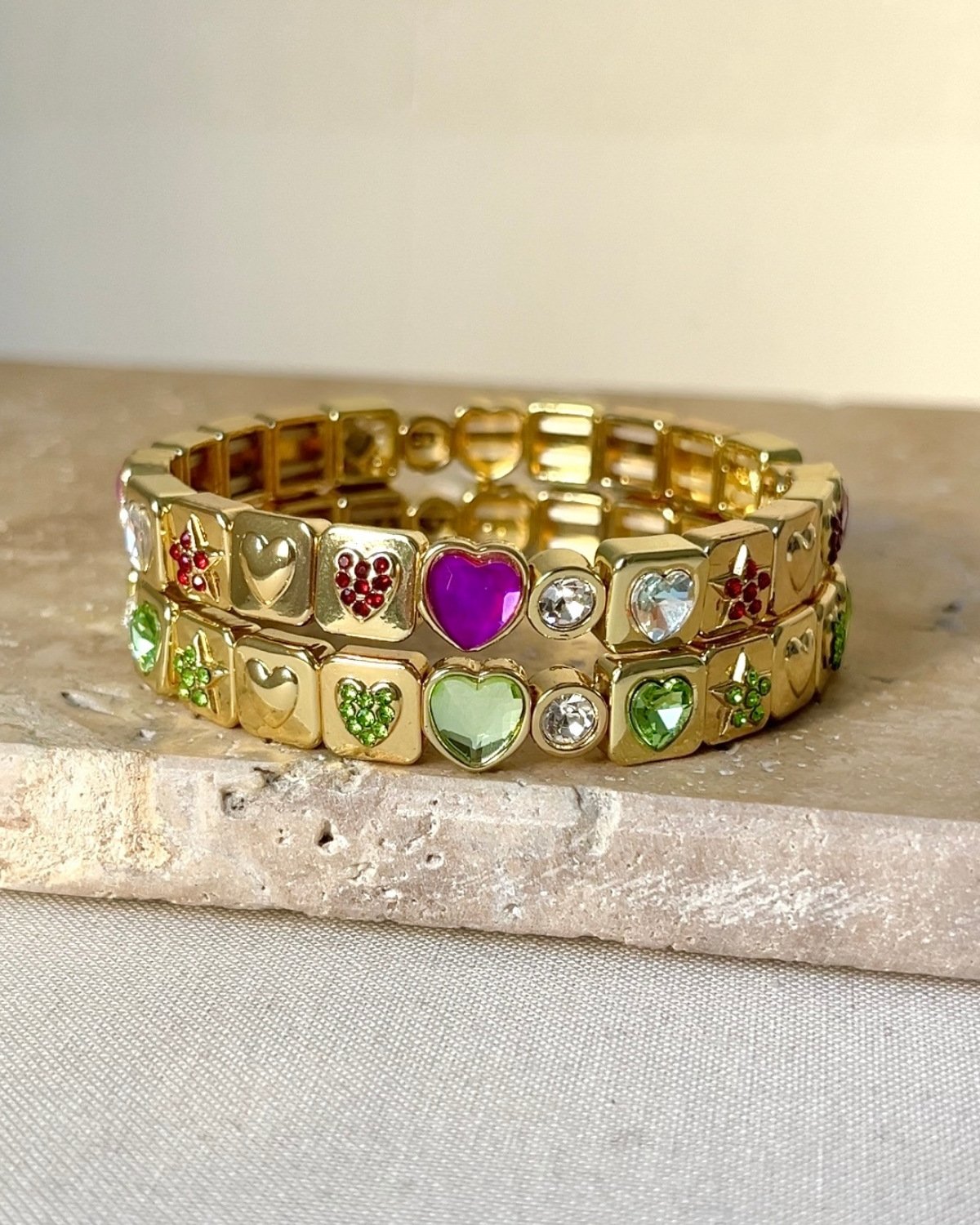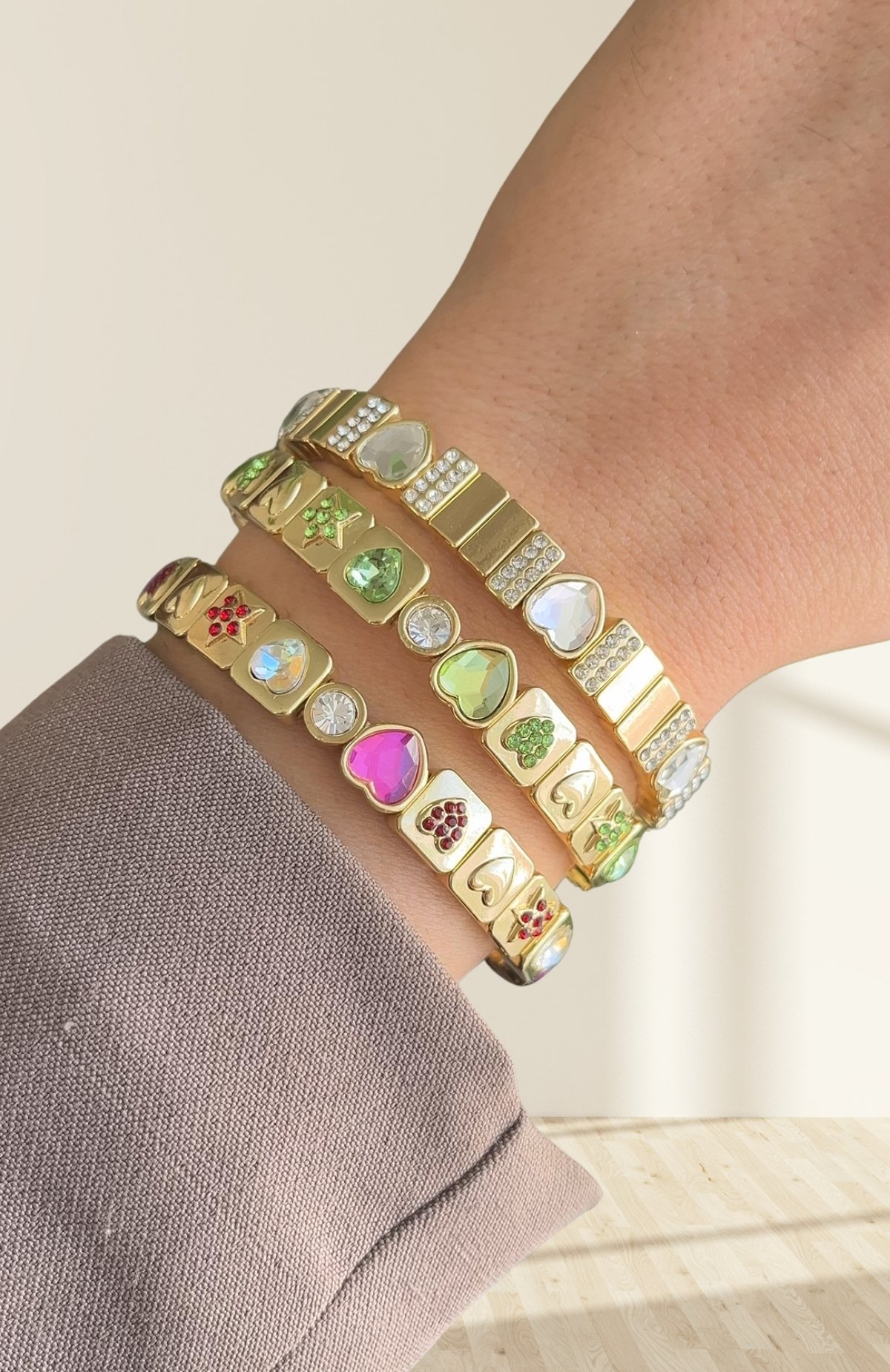 Altın Kaplama Renkli Taşlı Esnek Bileklik
