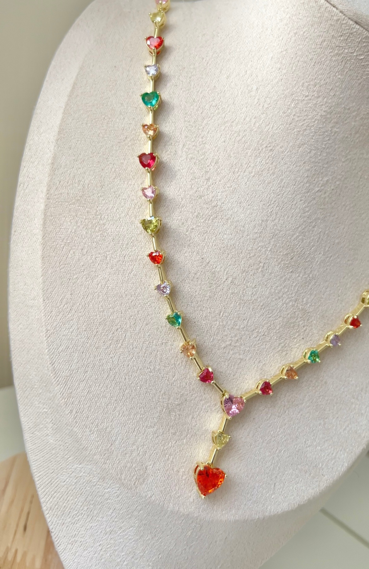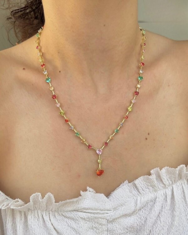 Altın Kaplama Renkli Taşlı Kalpli Kolye 42+6cm
