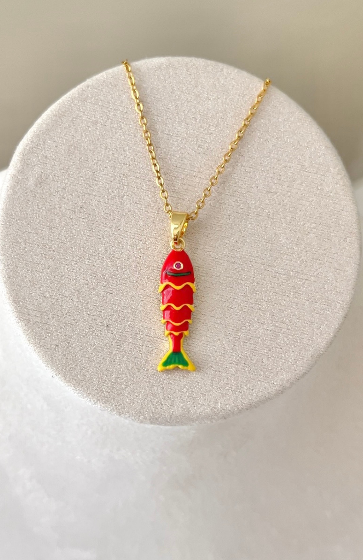 Çelik Kırmızı Balık Kolye 42+6cm