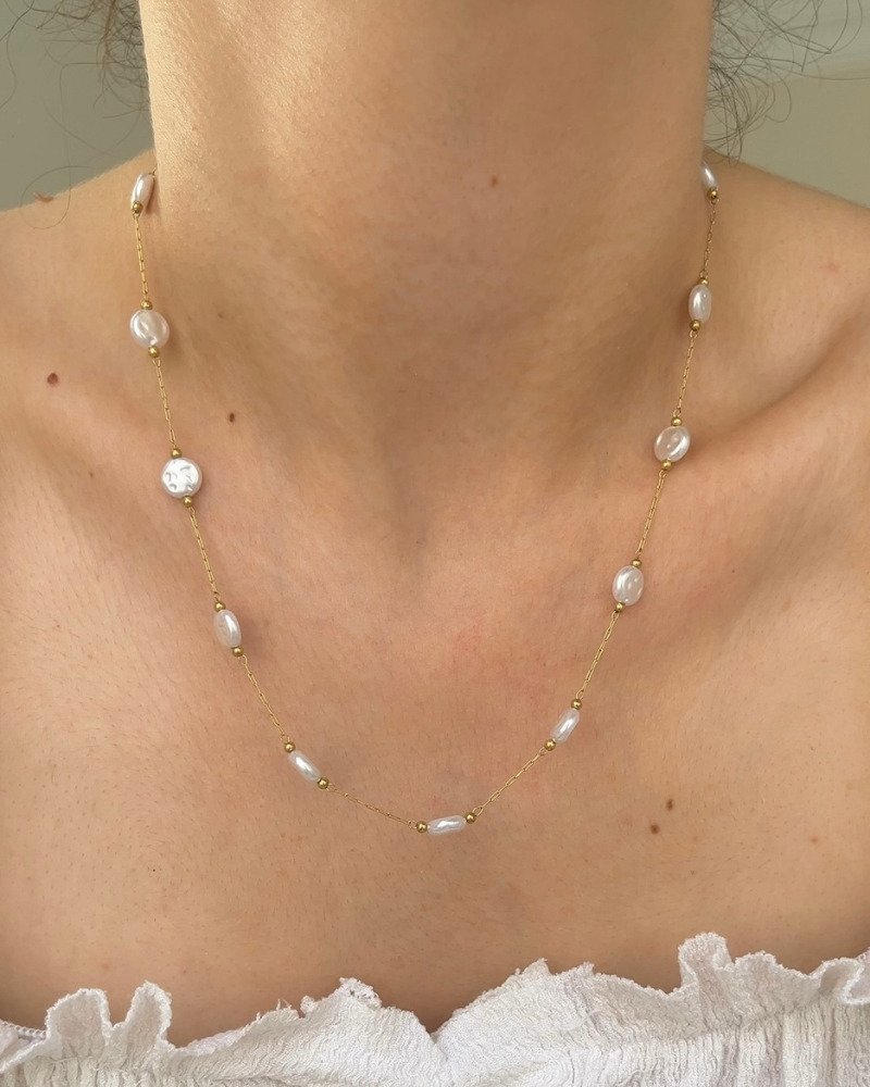 Çelik Minimal Sedef Kolye 42+6cm