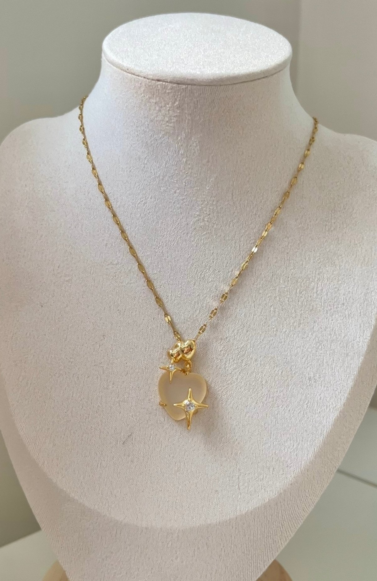 Çelik Orta Boy Krem Taşlı Kolye 42+6cm