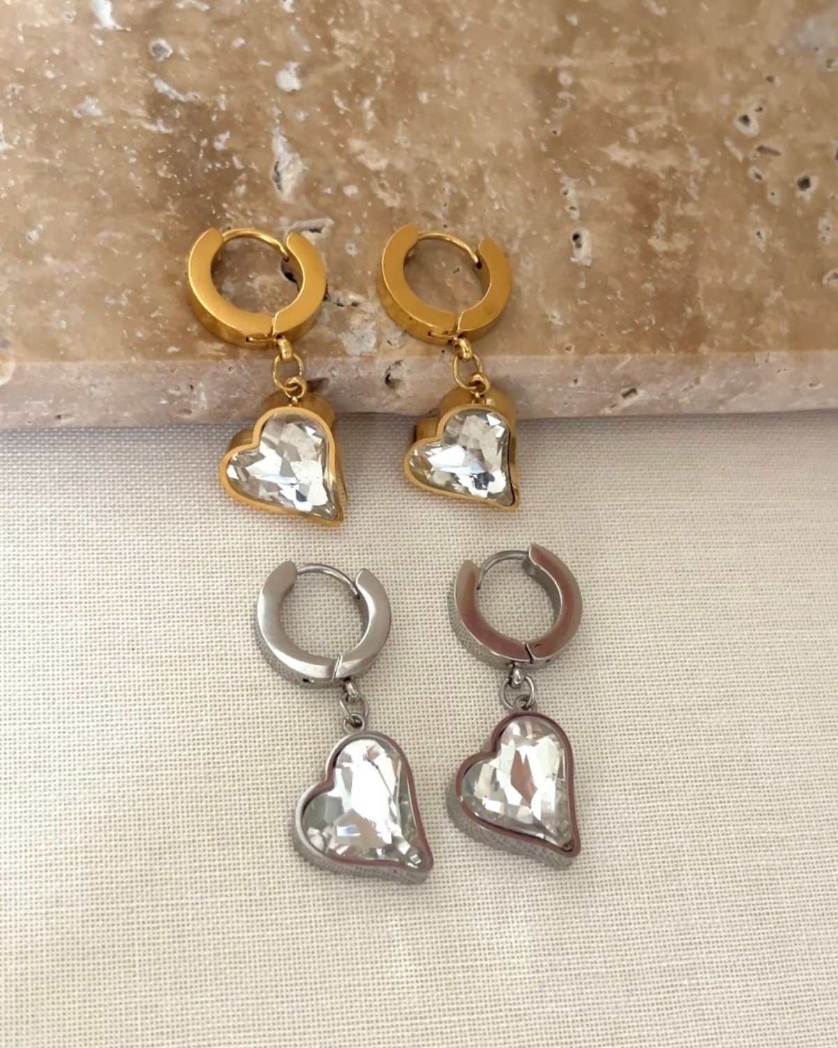 Çelik Parıltılı Kalpli Küpe