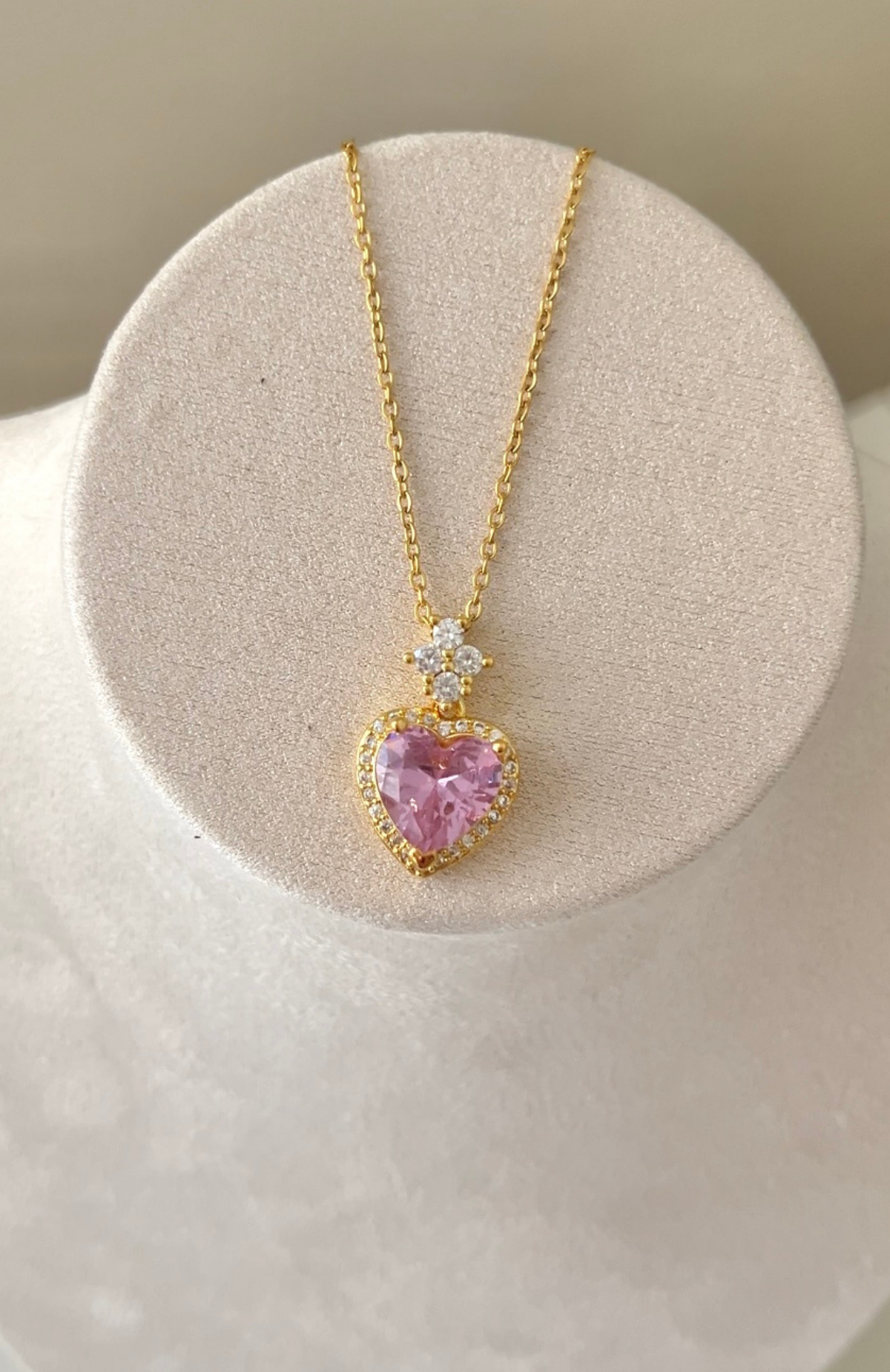 Çelik Pembe Taşlı Kalpli Kolye 42+6cm