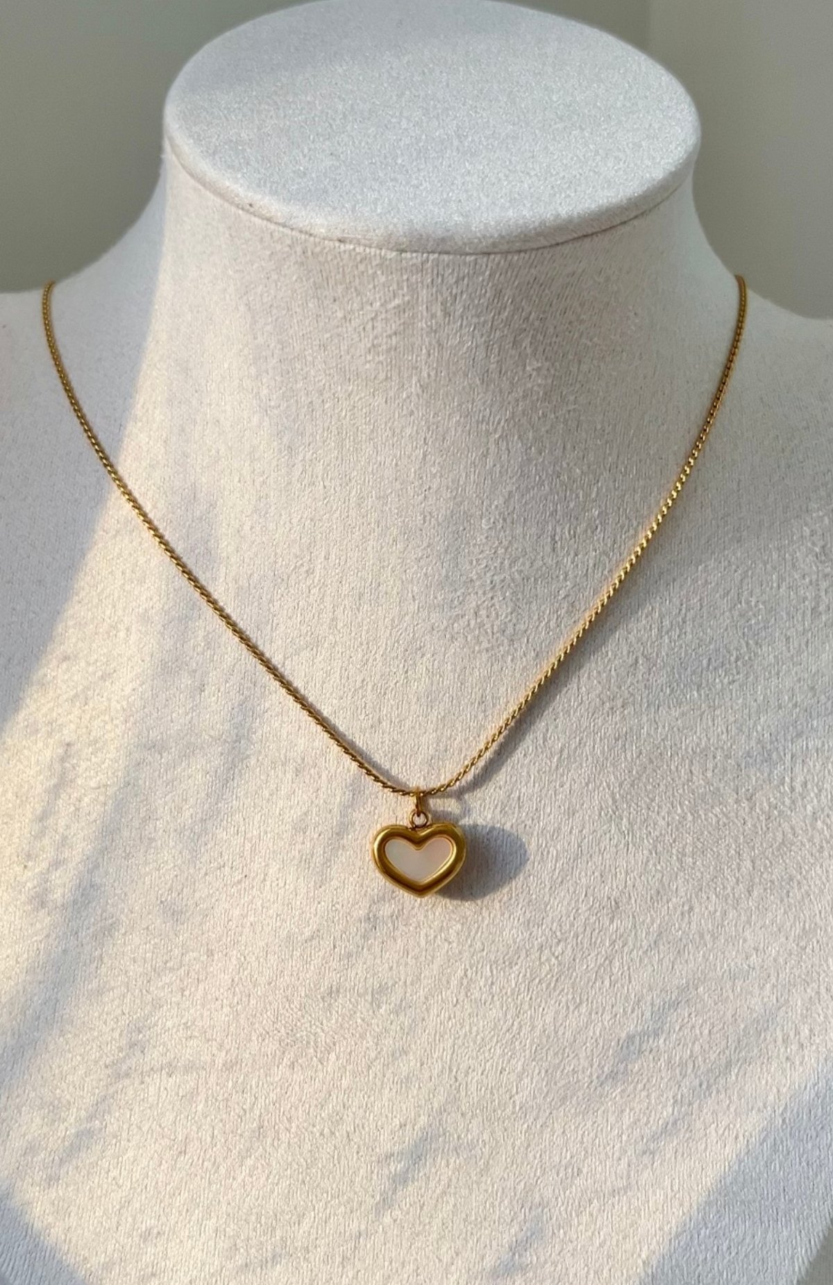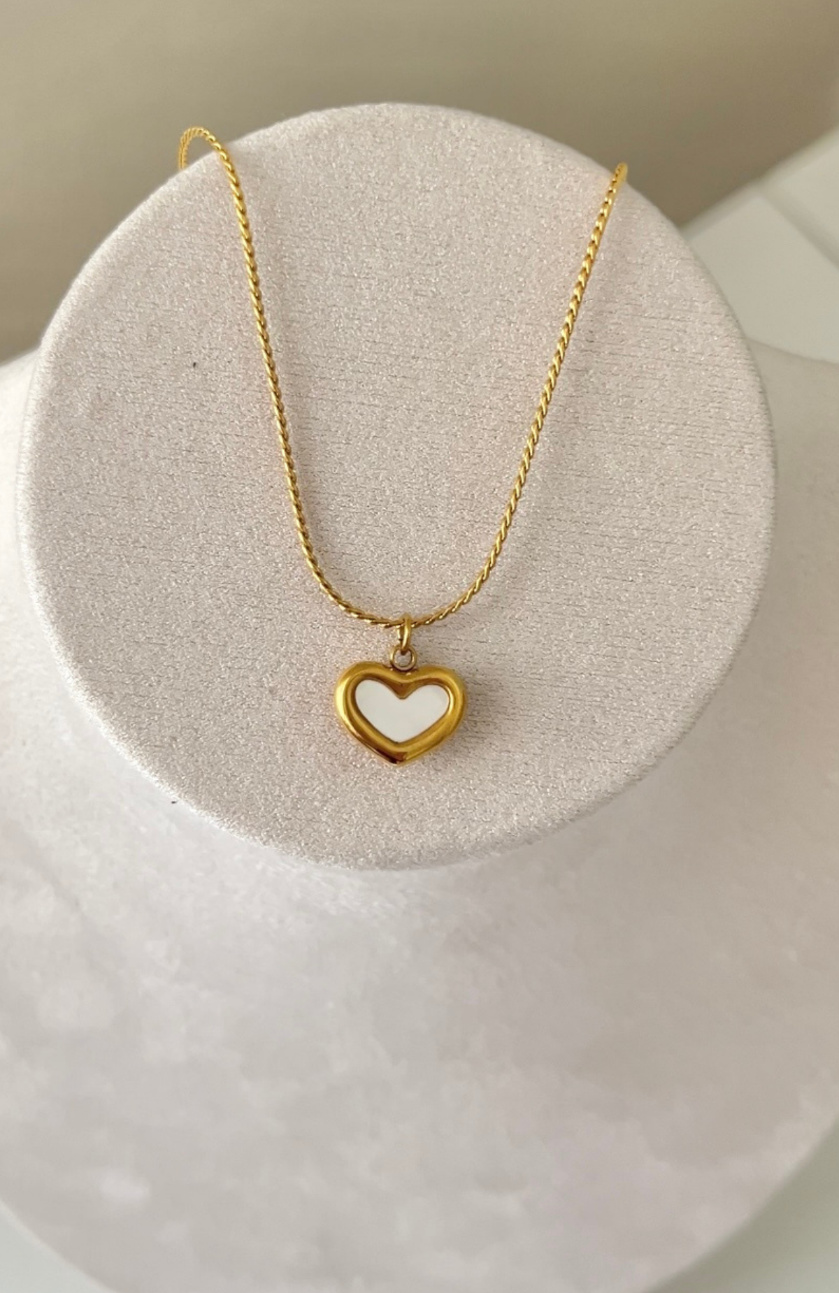 Çelik Sedefli Minimal Kalp Kolye 42+6cm