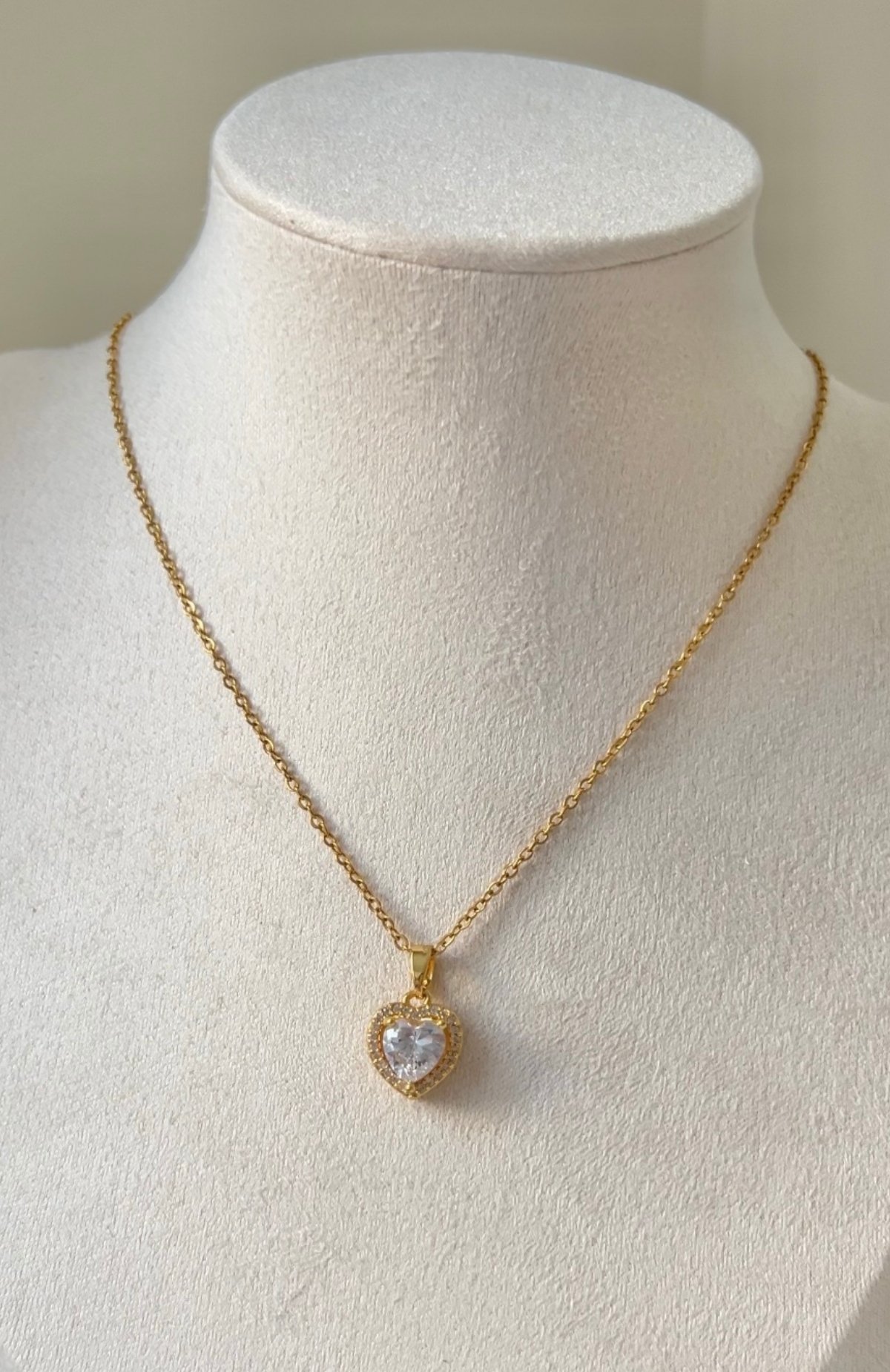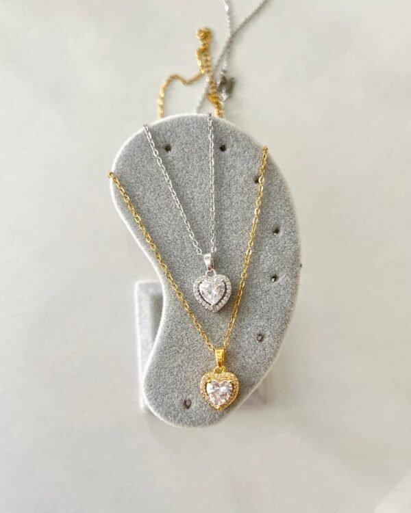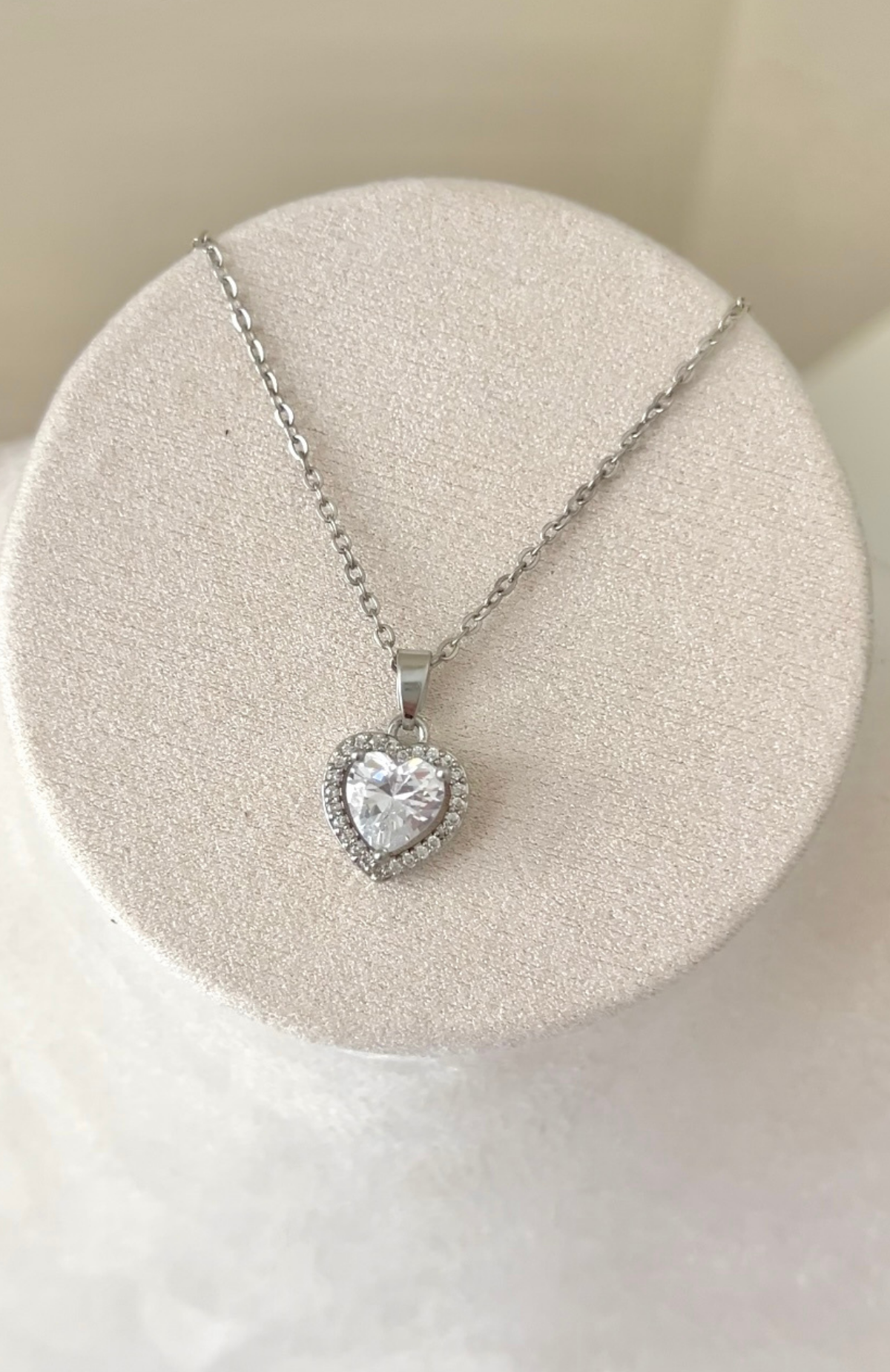 Çelik Taşlı Kalpli Minimal Kolye 42+6cm